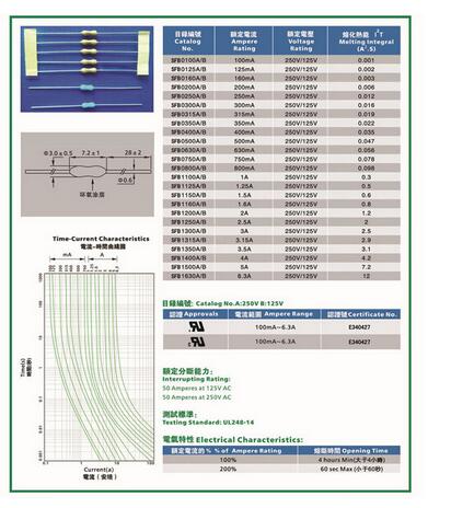 產(chǎn)品名稱(chēng): 電阻式保險(xiǎn)絲SFB 3.0*7.2mm 環(huán)氧涂層(快斷型)