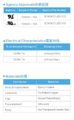 產(chǎn)品名稱: 電阻式保險絲RFP 4.0*12mm 350V 環(huán)氧涂層(快斷型)