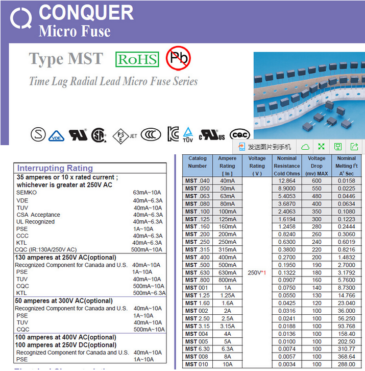 產(chǎn)品名稱: CONQUER Micro Fuse 微小型保險絲認證齊全
