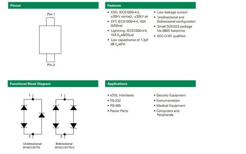 產(chǎn)品名稱: SP1004 Series 5pF 8kV bidirectional TVS Array