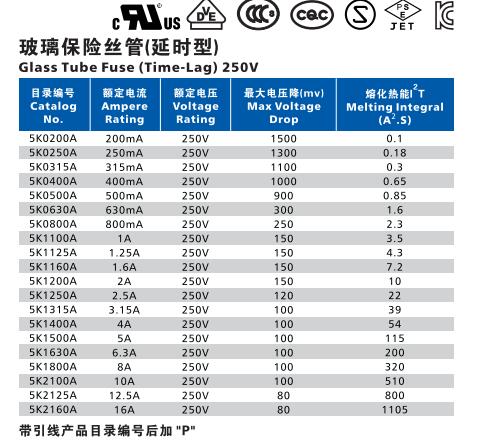 產(chǎn)品名稱(chēng): 5K Φ5.2×20 玻璃慢斷保險(xiǎn)絲 多國(guó)認(rèn)證