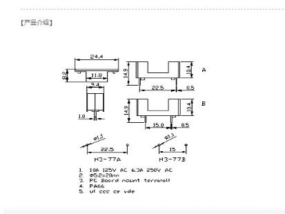 產品名稱: H3-77(PCB板安裝) 保險絲座(引線式)|汽車保險絲座H(引線式)|保險絲盒(引線式)