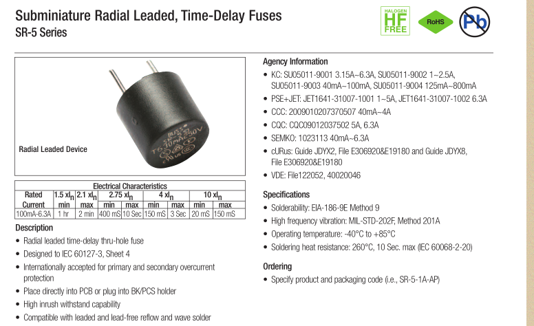 產(chǎn)品名稱: SR-5 bussmann 圓形保險絲