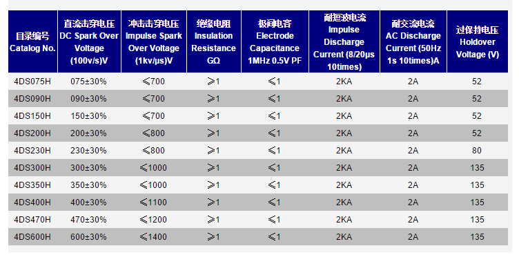 產(chǎn)品名稱(chēng): 4DS 4.5x3.2x2.7 陶瓷氣體放電管