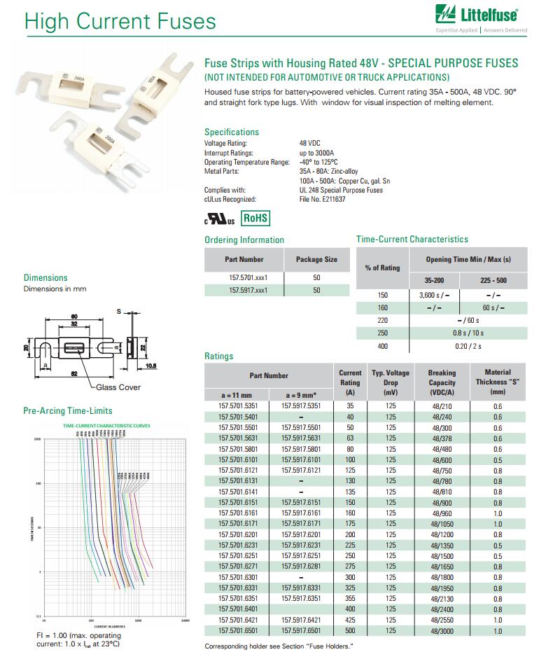 產(chǎn)品名稱: 157.5701 48V 系列 - 48V帶卡箍片狀保險絲 - 特殊用途保險絲