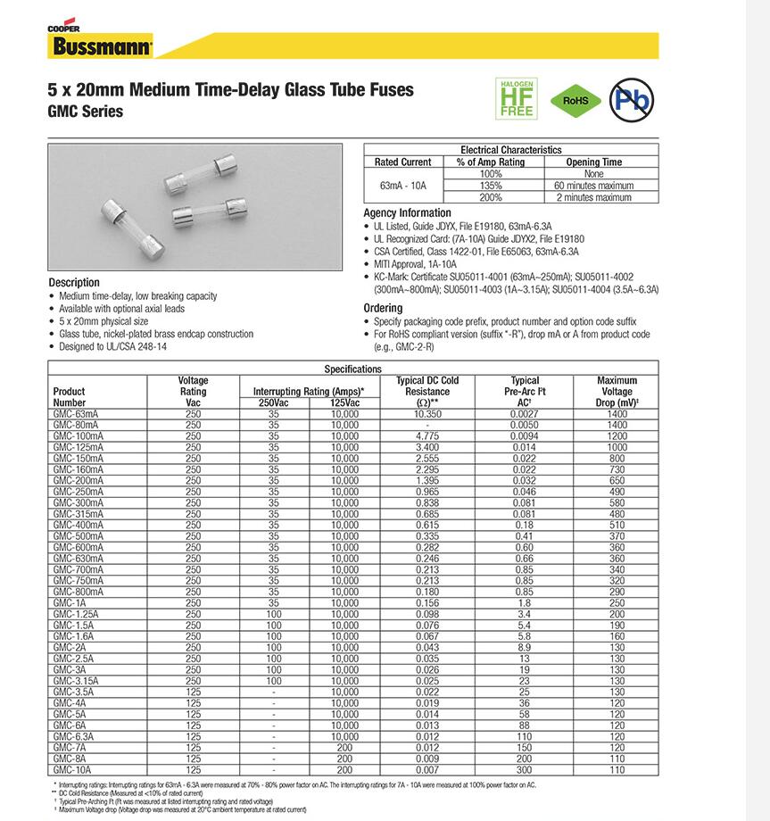產(chǎn)品名稱: bussmann 原包裝玻璃管保險(xiǎn)絲 GMC慢斷 5*20保險(xiǎn)絲