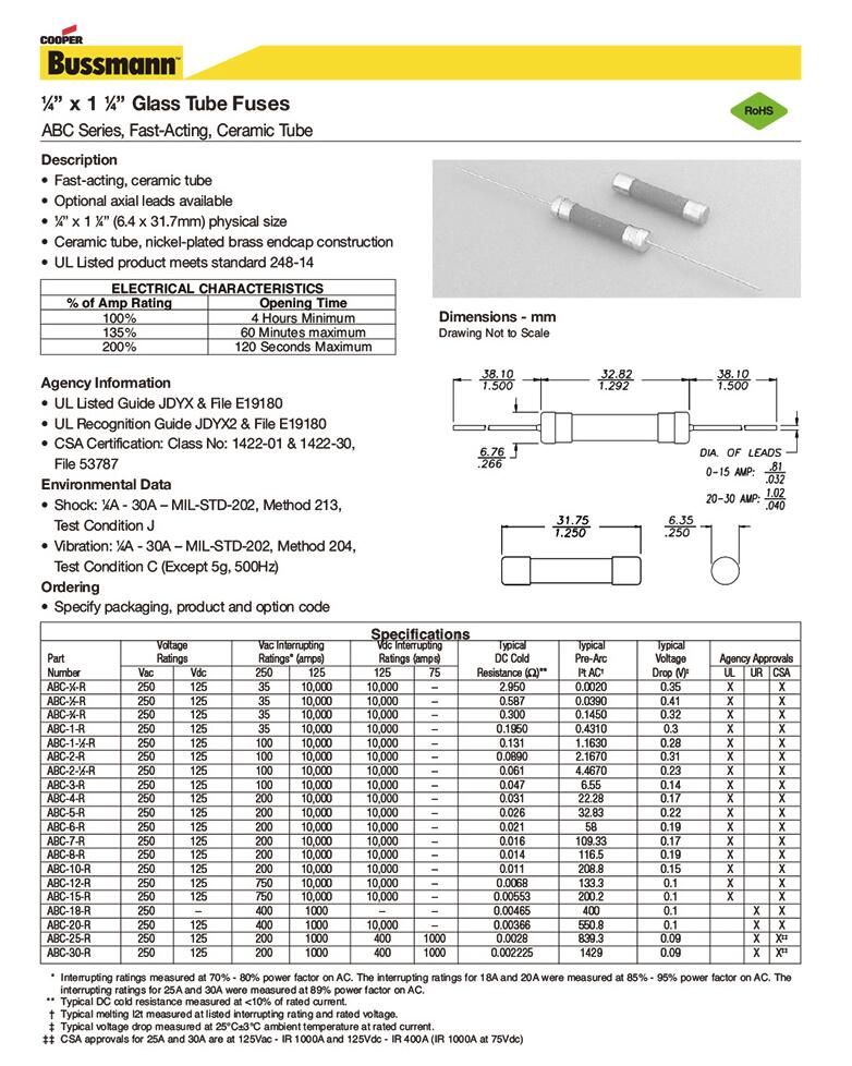 產(chǎn)品名稱: ABC 帶引線保 陶瓷 保險絲管