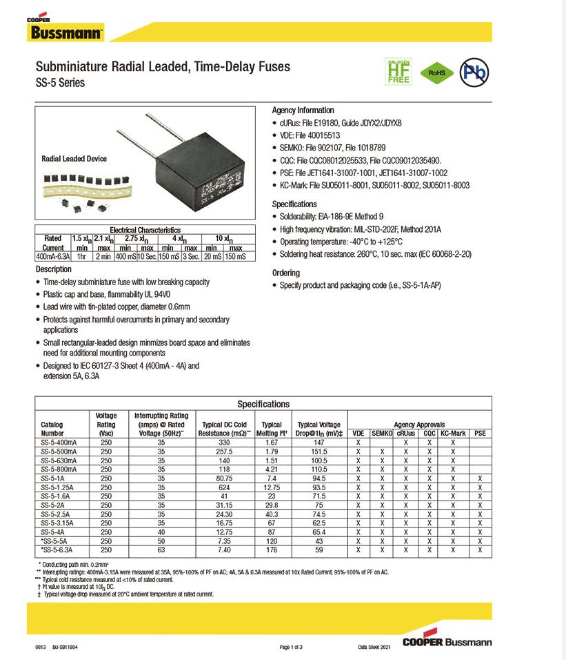 產(chǎn)品名稱: SS-5-1A-AP 方形保險絲 塑封式保險絲