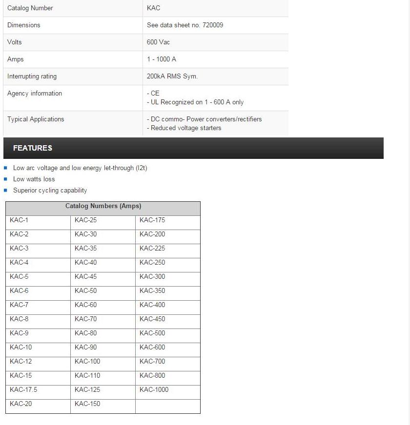 產(chǎn)品名稱: North American — KAC 600V: 1-1000A