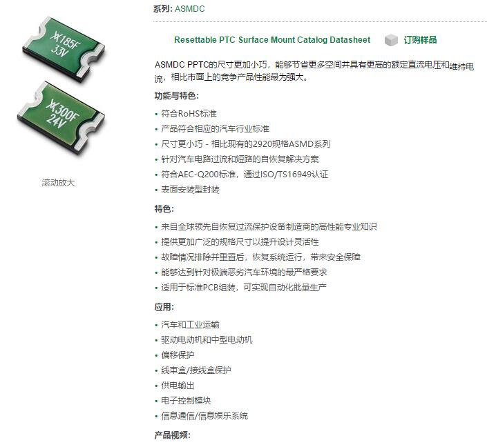 產(chǎn)品名稱: ASMDC 系列 - PolySwitch汽車用2920規(guī)格無鉛表面貼裝式自恢復PPTC