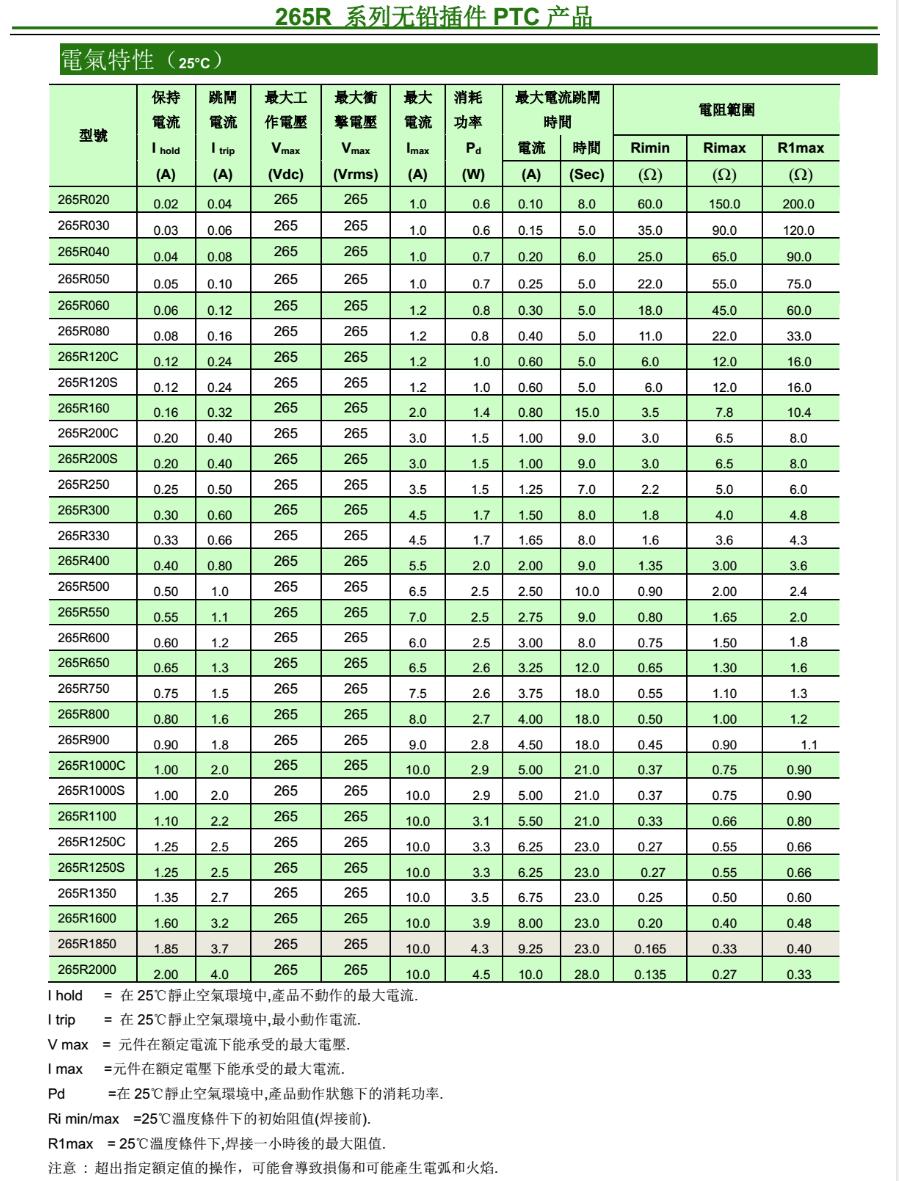 產(chǎn)品名稱: 265V自恢復(fù)保險絲