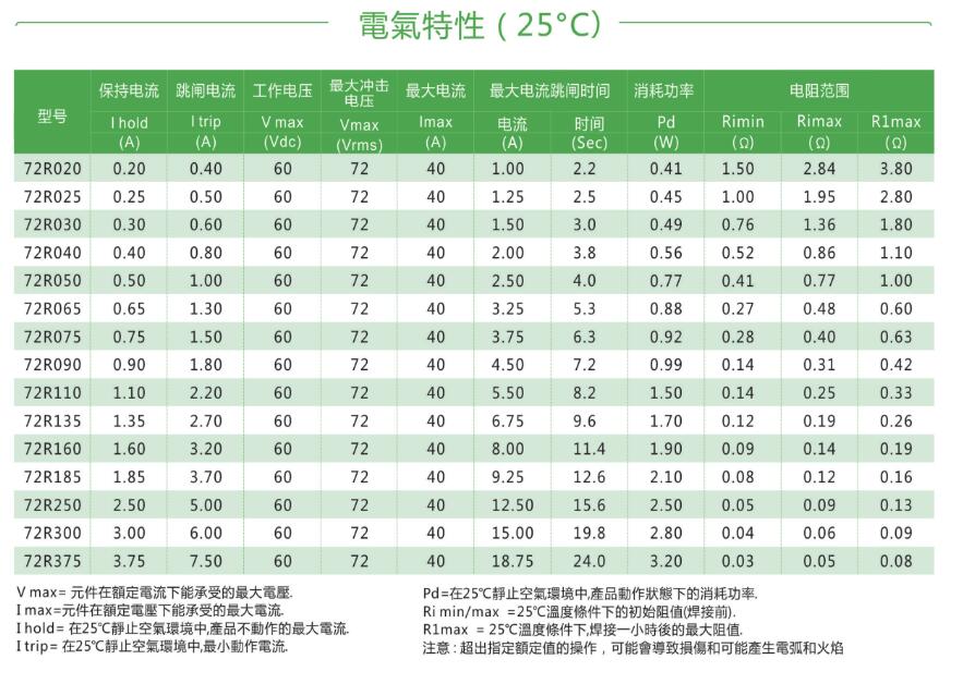 產(chǎn)品名稱: 72V自恢復(fù)保險絲