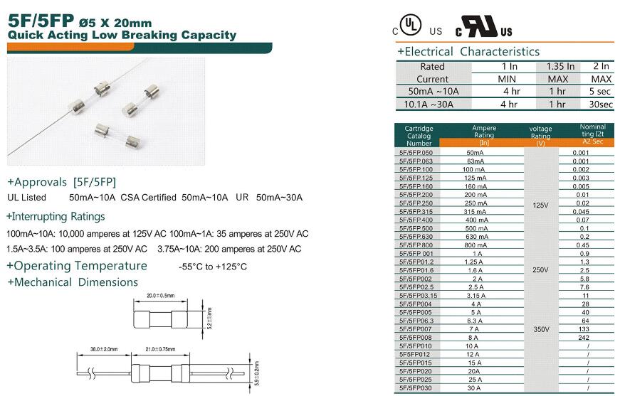 產(chǎn)品名稱: 350V 5*20快斷玻璃管保險絲