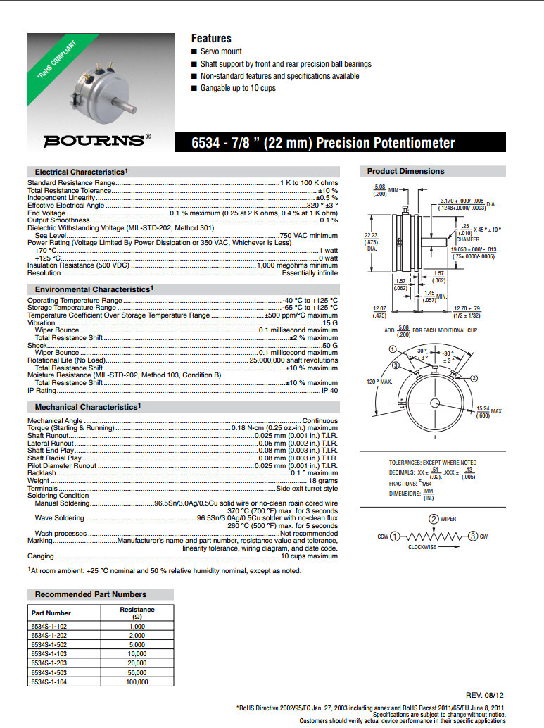 簡述: BOURNS單轉(zhuǎn)型精密電位器6534