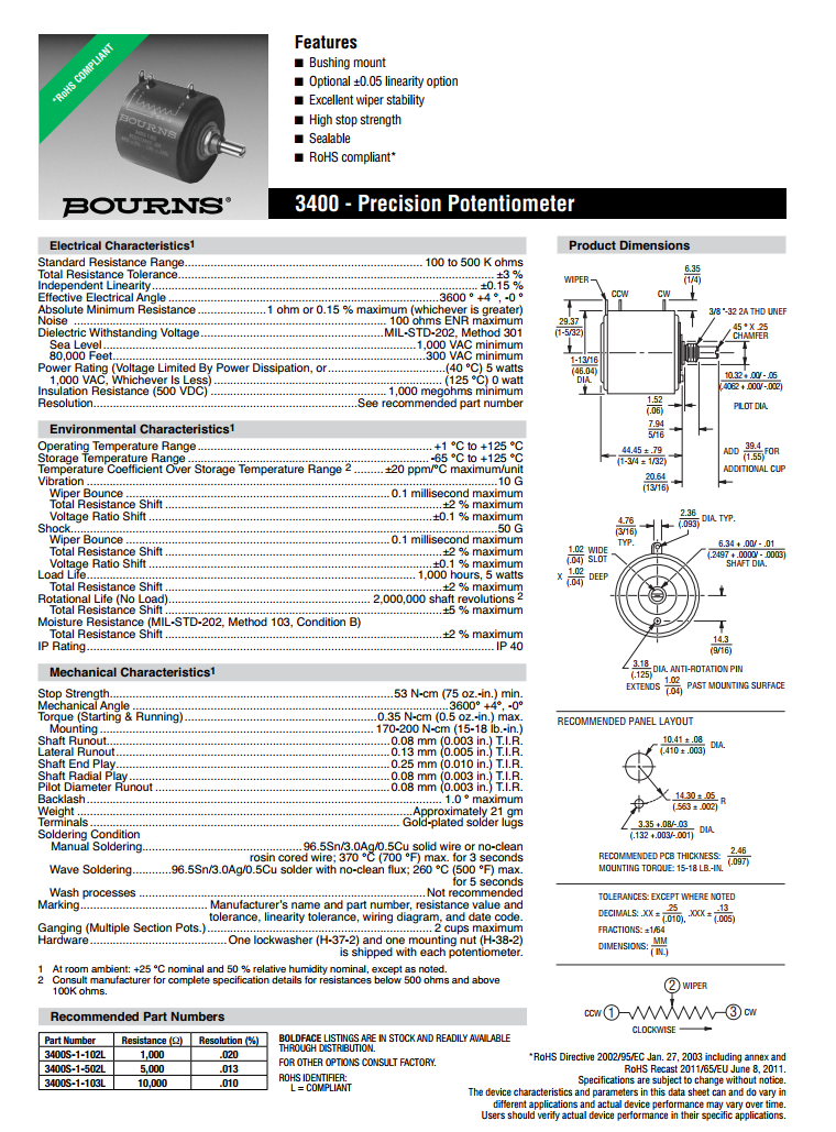 簡(jiǎn)述: BOURNS多轉(zhuǎn)型精密電位器3400