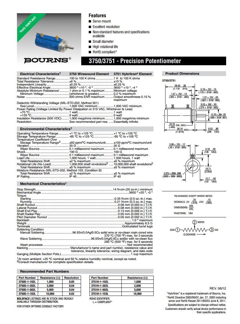 簡述: BOURNS多轉(zhuǎn)型精密電位器3750/3751