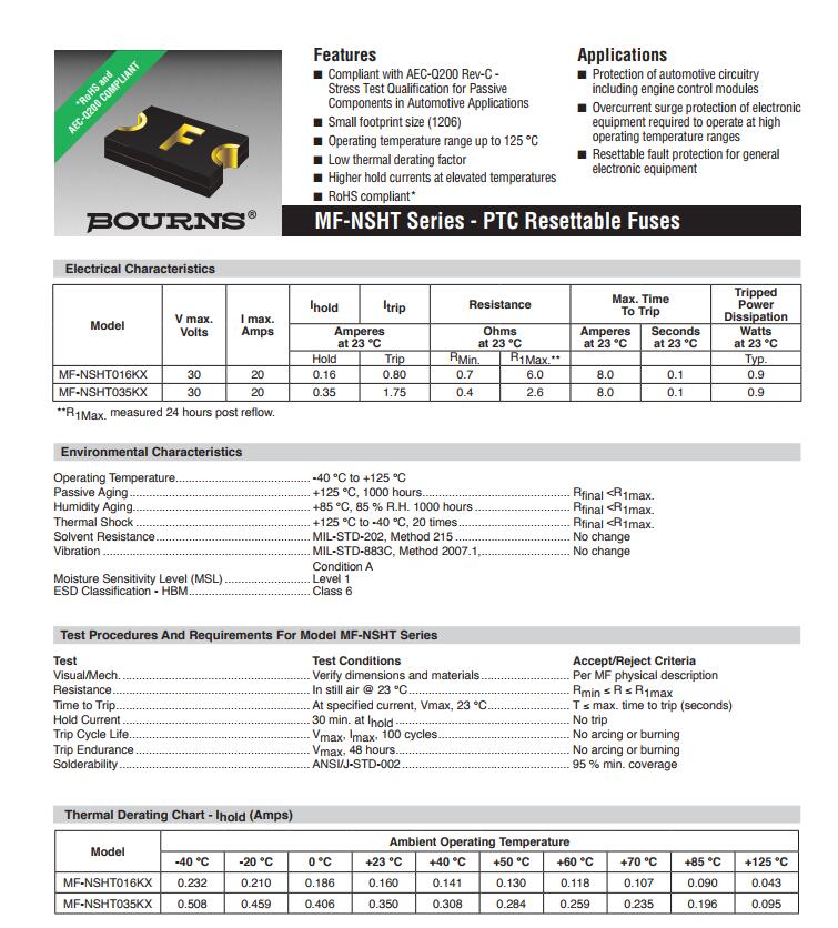 產(chǎn)品名稱(chēng): BOURNS 車(chē)規(guī)保險(xiǎn)絲 MF-NSHT AEC-Q200認(rèn)證