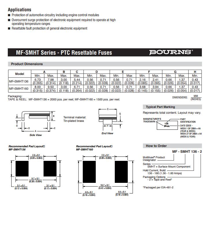 產(chǎn)品名稱: BOURNS 車(chē)規(guī)保險(xiǎn)絲 MF-SM AEC-Q200認(rèn)證
