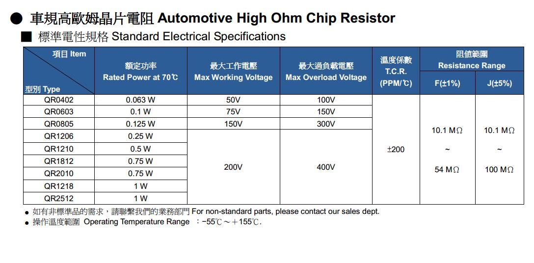 簡(jiǎn)述: 車規(guī)高歐姆電阻,車規(guī)搞歐姆晶片電阻