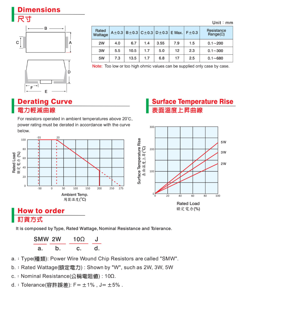 產(chǎn)品名稱: SMW 電力型繞線封裝電阻器