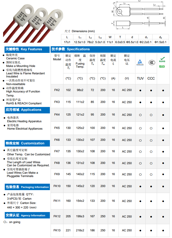 產(chǎn)品名稱: 16A 陶瓷溫度保險絲