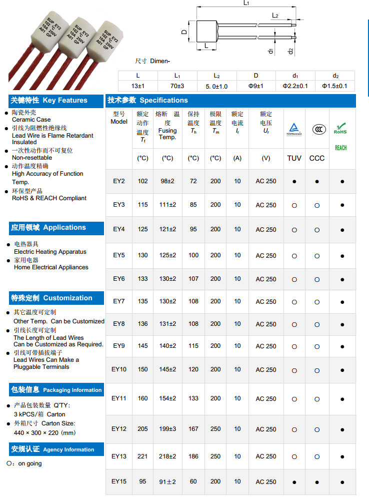 產(chǎn)品名稱: 10A 陶瓷溫度保險絲