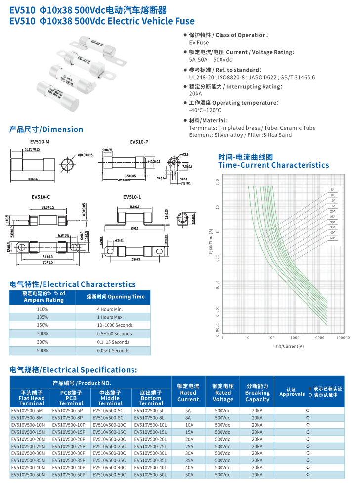 產(chǎn)品名稱: 電動(dòng)汽車熔斷器EV510 10*38 Electric Vehicle Fuse