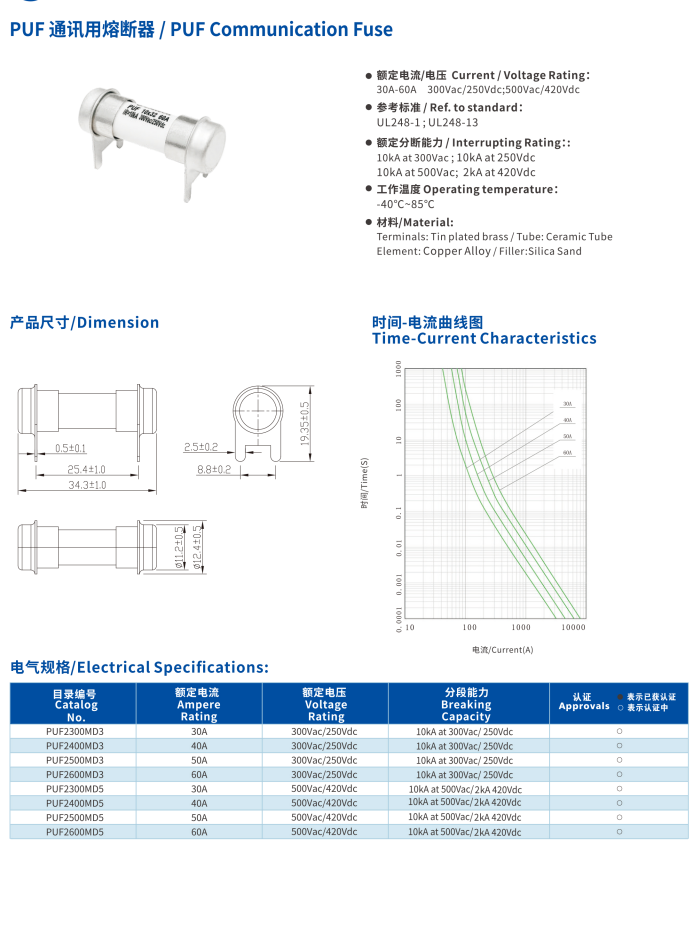 產(chǎn)品名稱: 通訊用熔斷器PUF Communication Fuse